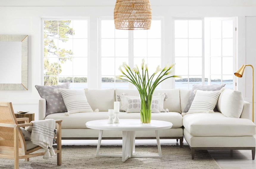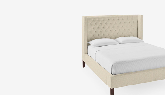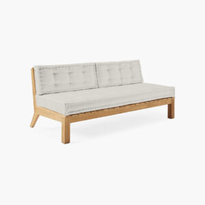 There’s so much we love about this piece: it’s simple, it’s clean, and it offers plenty of room to lounge. The tailored bench seat and track arms bring a crisp, modern look. It’s versatile, too – a quiet silhouette that works well in every space. A slim wood trim adds a pretty finishing touch.